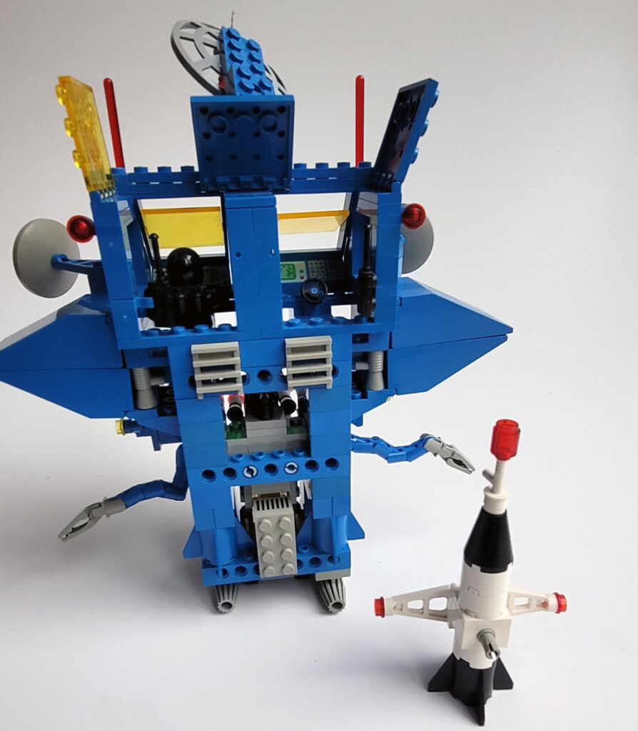 Bei dem LEGO® 6951 – Sonnenobservatorium (engl. Robot Command Center) von 1984 war ich mir nie ganz sicher…ist das eine Raumstation oder eher ein Fahrzeug? Das Gute ist: es geht für beides durch. Es sind sehr viele Spieloptionen in dem Set enthalten: ein ausklinkbares Fahrzeug und ein kleiner Raumgleiter, der sich im Inneren versteckt. Eine Raketensonde, die in den Raum geschossen werden kann. Oder die Greifarme, die Mondgestein in die diversen Aufbewahrungsmö¶glichkeiten sammeln können. Mit dem LEGO® 6951 – Sonnenobservatorium kann man wirklich viele Weltraum – Abenteuer erleben.