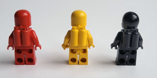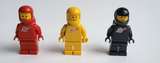 Zu dem Set gehören 3 Minifiguren, Classic Space Astronauten in den Farben Rot (SP005), Gelb (SP007) und Schwarz (SP003).